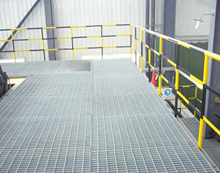 平台钢格栅又称为“热镀锌钢格板平台”,平台钢格栅板,是用扁钢按照一定的间距和横杆进行交叉排列,并且焊接成中间带有方形格子的一种钢铁制品,此种钢格板在工业各领域用途广泛的, 对表面冲击具有很强的抵抗力, 平台钢格栅一般采用碳钢制作,外表热镀锌,可以起到防止氧化的作用。也可以采用不锈钢制作。